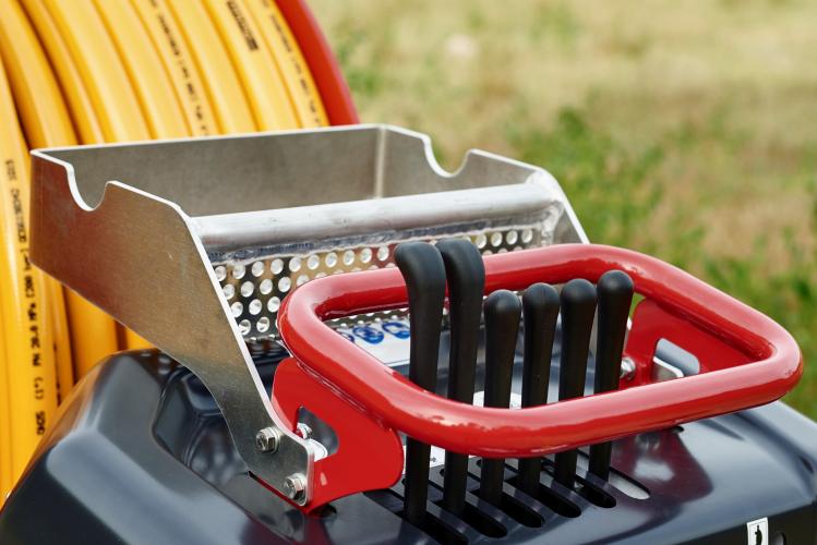 Store your cover hooks in the practical holder located on the side of the Bucher Remote Reel.