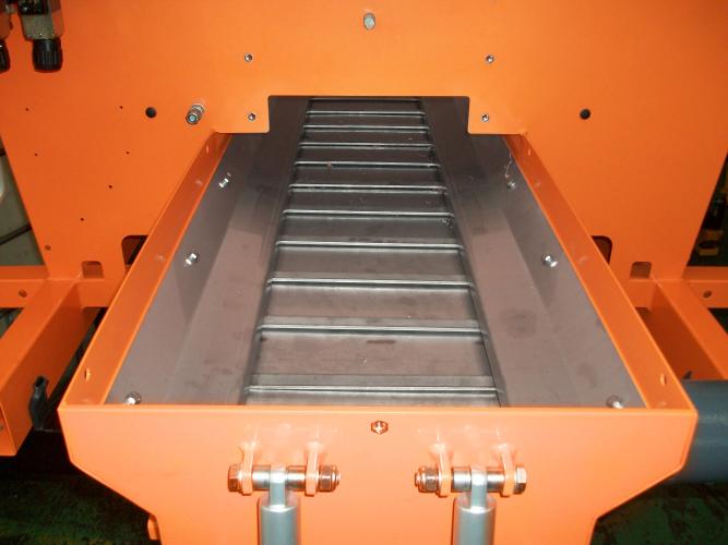 Metal belt: The feeding system is realized by an AISI 304 stainless steel chain with cross-bars. The chain is guided by toothed pinions that enables a constant traction maintaining a correct translation synchrony, without skidding.