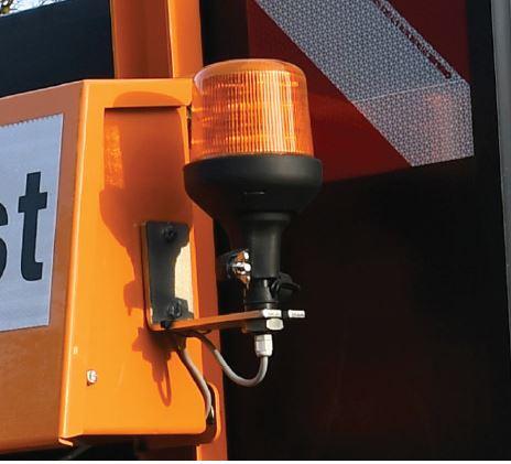 Am Heck des Streugerätes angebracht zur besseren Sichtbarkeit und Warnung anderer Verkehrsteilnehmer.
