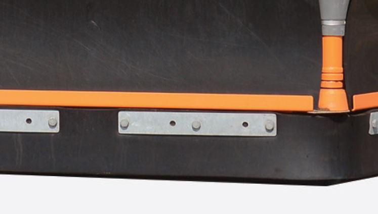 Der Randsteinabweiser verhindert Beschädigungen am Pflug bei seitlichen Kollisionen. Der PU-Kantenschutz ist ideal zum Räumen an New Jersey Barrieren und dient als zusätzliche Auswurfhilfe.