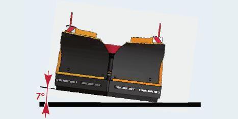 Seitlicher Niveauausgleich, der sich dank freier Bewegung (+/-7°) Fahrbahnunebenheiten anpasst. In Transportstellung bleibt der Pflug in horizontaler Position.