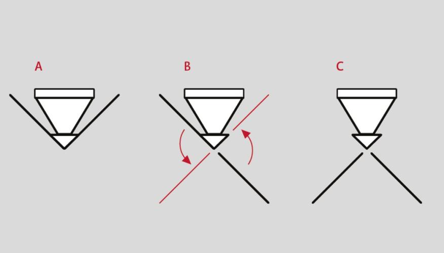 (A) Keil 30° — Die keilförmige Stellung ermöglicht ein gleichzeitiges Schneeräumen nach rechts und links.