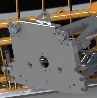 Das spezielle Gelenk des Mittelsporns ermöglicht Räumstellungen zwischen -40° in Keilposition und bis zu +32° in Schaufelposition. Sowohl die Ausführung mit Einzel- als auch mit Doppelschürfleiste erlauben es, den Räumwinkel stufenlos ohne Beeinträchtigung zu ändern.