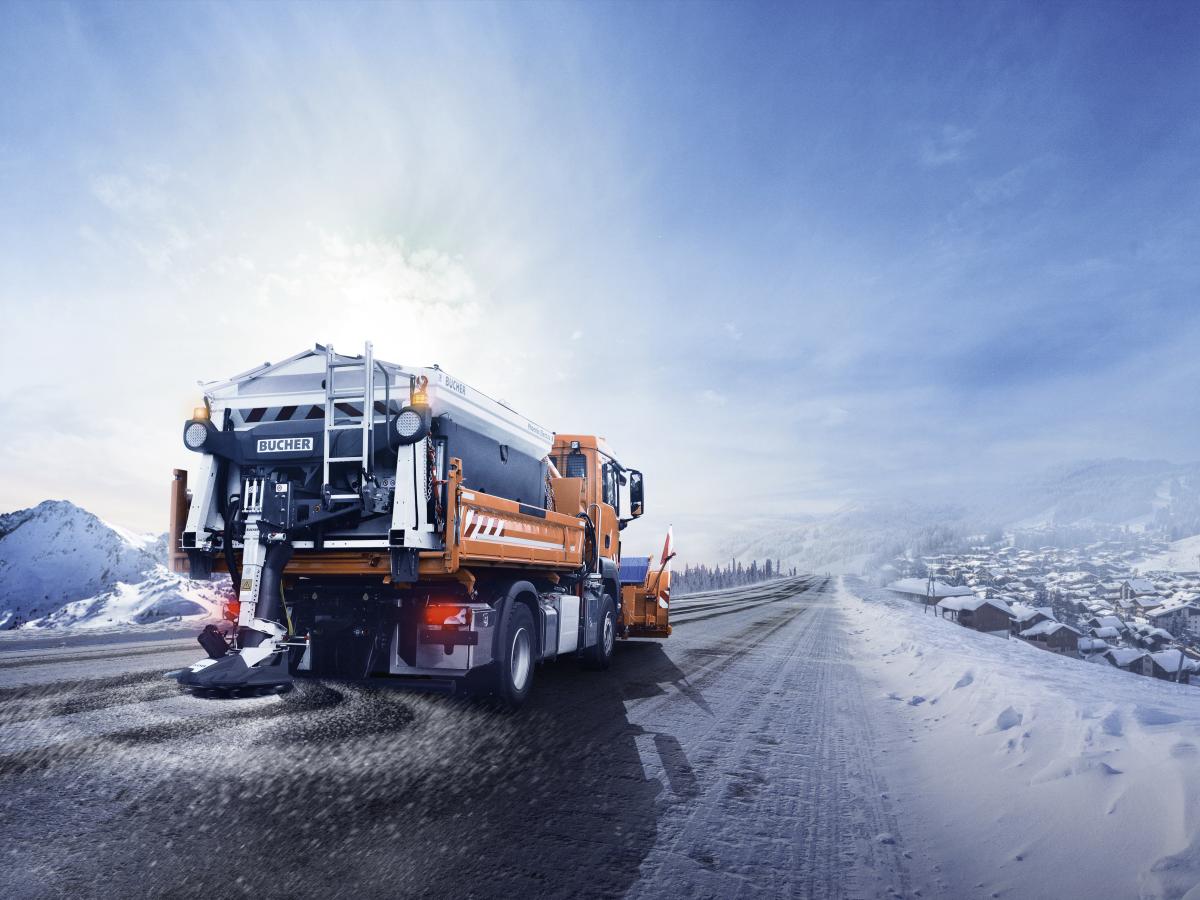 Grazie alla configurazione a basso profilo del contenitore, che assicura un baricentro basso, la combinazione veicolo - macchina per sostanze antigelo è ideale per il servizio invernale municipale.