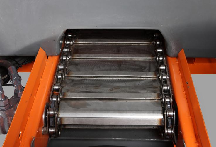Al termine del sistema di alimentazione a catena o a nastro è posizionato un rullo frantumatore trasversale con palette in acciaio inox e alimentato idraulicamente. Il rullo frantumatore permette un continuo afflusso di materiale dalla tramoggia al gruppo di spandimento, frantumando i blocchi di materiale e impedendone la caduta incontrollata.
