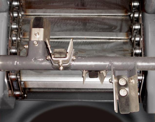 Il sistema è costituito da un nastro metallico con traversini in acciaio inossidabile AISI 304. Le maglie sono guidate da pignoni che consentono una trazione costante mantenendo una corretta sincronia nell’avanzamento.