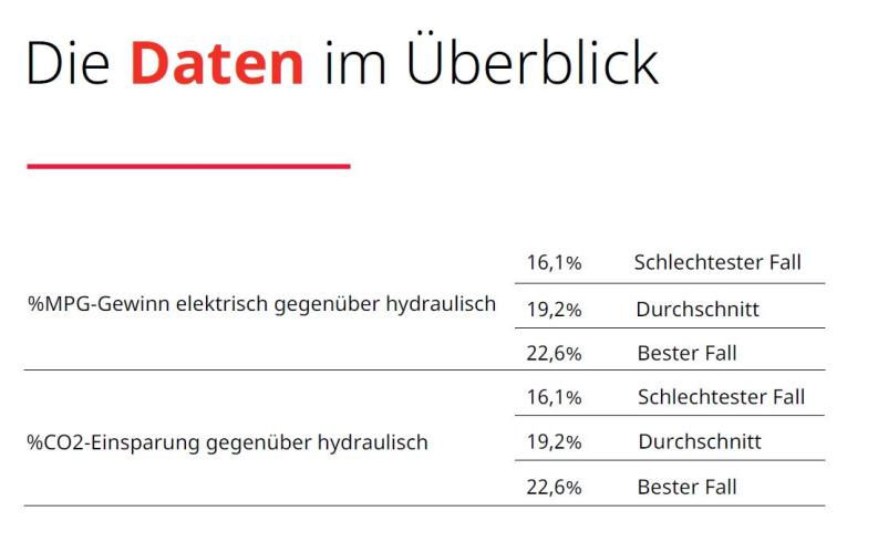 Nach Versuchen in Großbritannien mit der Mietflotte von Bucher Municipal UK während der Wintersaison 2020/21 hat Bucher eine sehr deutliche Effizienzsteigerung von 19,2 % zwischen einem herkömmlichen hydraulischen Streuers und Electra gemessen. Dies entspricht einer Kraftstoffeinsparung von 19,2 % und einer Verringerung der CO2-Emissionen des dieselbetriebenen Fahrzeugs um 19,2 %*.