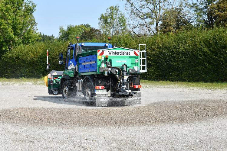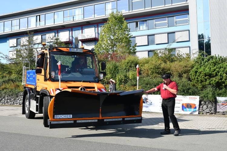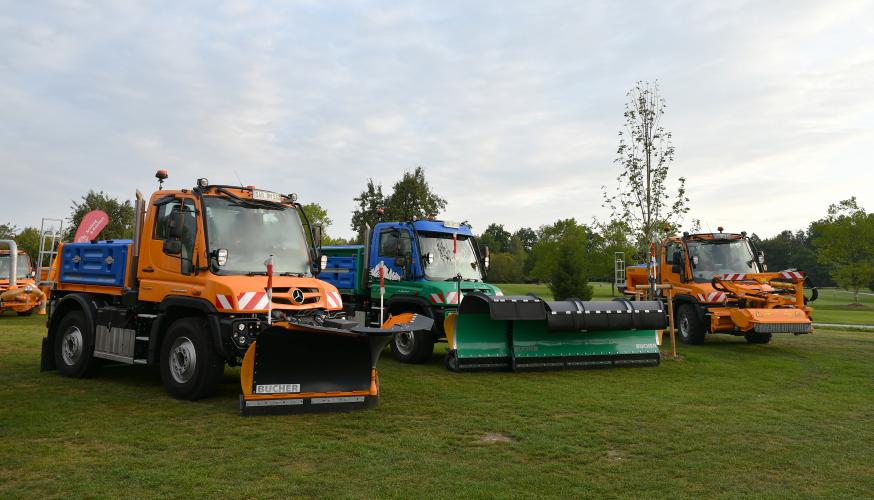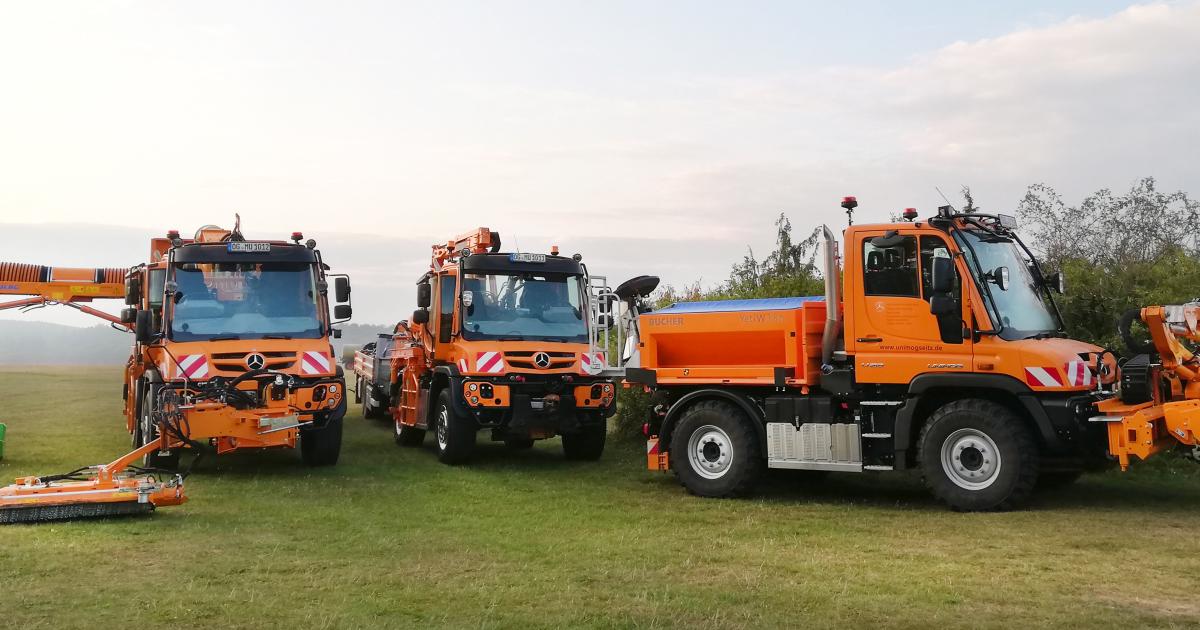 Insgesamt fünf Unimog-Geräteträger mit zahlreichen Anbaugeräten von Bucher Municipal Wernberg und MULAG waren auf der gemeinsamen Roadshow zu sehen – hier am Standort Oberrot.