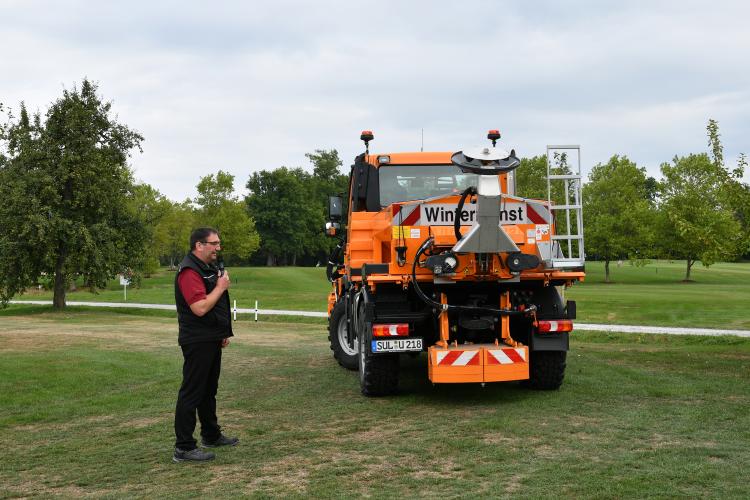 Thorsten Heinzelmann (Mercedes-Benz Special Trucks Daimler) demonstriert die Vorteile des Unimog U530.