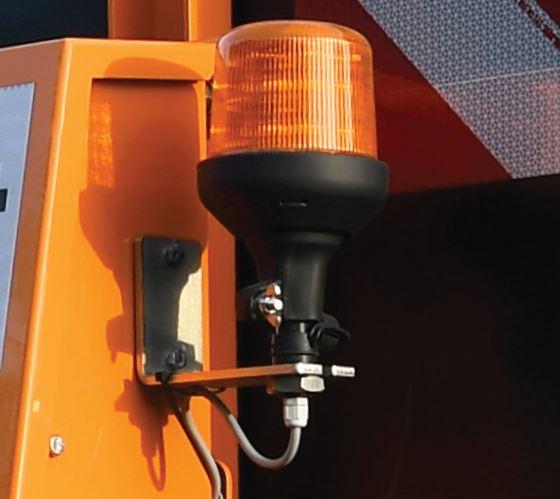 Am Heck des Streugerätes angebracht zur besseren Sichtbarkeit und Warnung anderer Verkehrsteilnehmer.