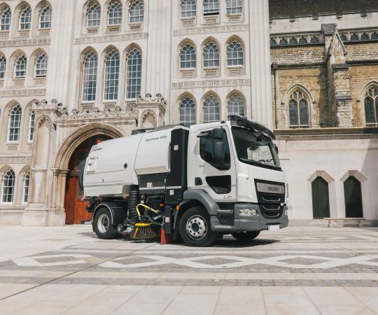 100 % elektrisk lastbilmonteret fejemaskine, udviklet til udholdenhed, høj ydeevne og god brugervenlighed.