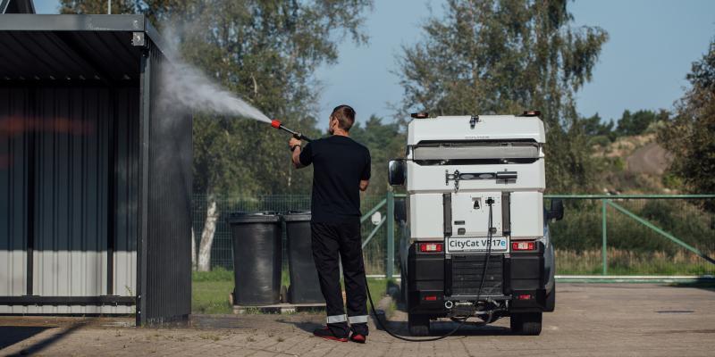 Bucher CityCat VR17e kan udstyres med en 100 bar vandpumpe med en håndlanse med pistolgreb og automatisk tilbagetrækning, hvilket giver føreren et udvidet udvalg af rengøringsmuligheder.