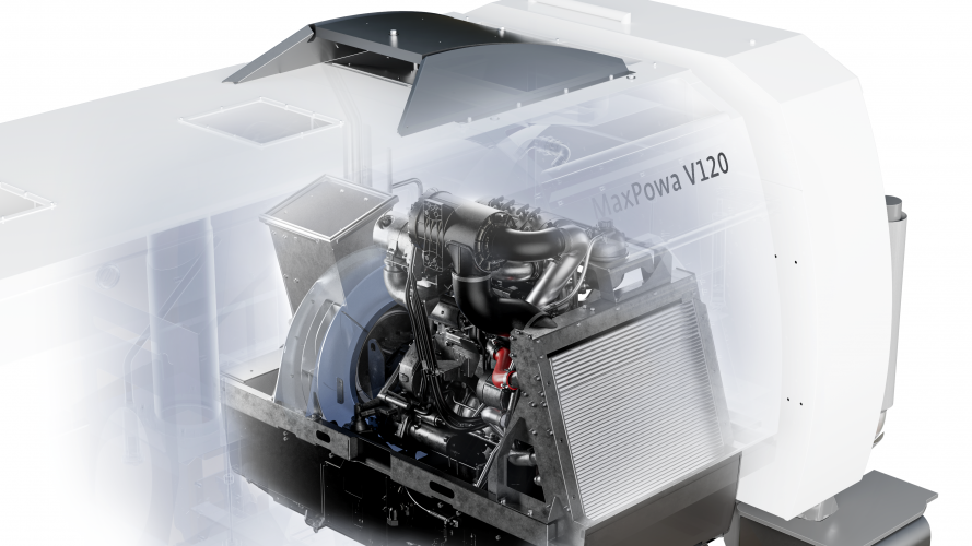 Den nye MaxPowa V120 er forsynet med en højeffekts 129 kW hjælpemotor. Den helt nye Stage 5-motor fra JCB passer ind i den eksisterende powapack og opretholder ensartethed af komponenter på tværs af vores V-serie. Et nyt tre-plade ventilatordesign håndterer den forbedrede kraft fra motoren for optimeret luftstrøm, som sammen med en opdateret kølepakkeposition og Smoothflow luftteknologi giver enestående sugeydelse