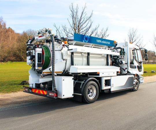 Elektrisk, emissionsfri og (næsten) lydløs kombi slamsuger - optimeret til opgaver i tætbefolkede områder, mellem og inde i bygninger.