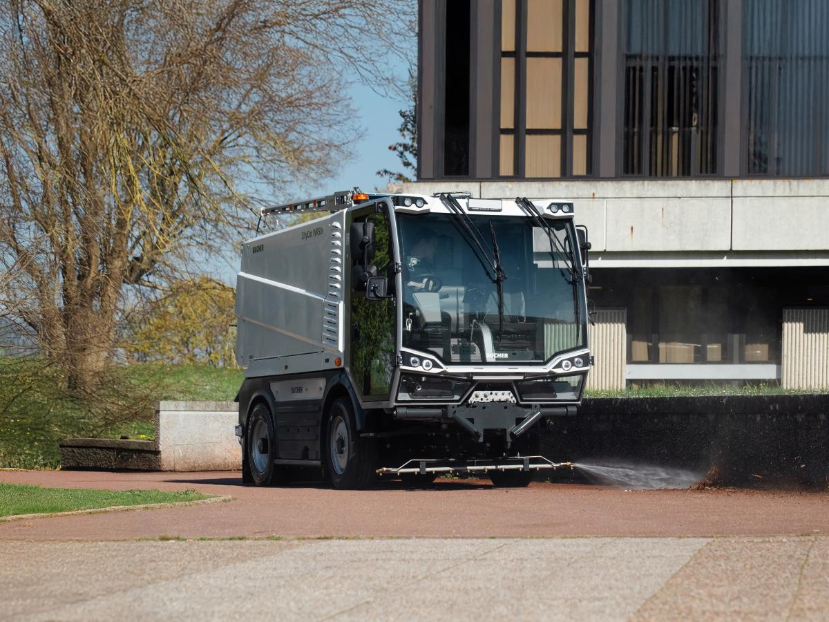 La laveuse compacte 2000 litres articulée Bucher CityCat W20e est équipée d’un bloc-batterie Bucher conçu sur mesure de 80 kWh avec une autonomie de 10 heures, soit un poste complet.