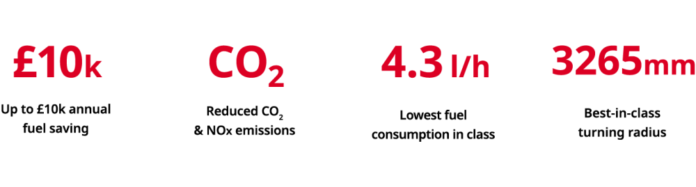 Its four-wheel steering achieves a best-in-class wall-to-wall turning radius of 3265mm and with an industry-leading low height (1985mm) it’s the perfect nifty compact for inner city areas. Boasting the lowest fuel consumption in class of 4.3 l/h @1480 rpm in sweeping mode (tested to EN-15429-2) the C202 will save you up to £10k annually whilst reducing CO2 & NOx. And the C202’s environmental credentials don’t stop there; every machine has the latest Euro 6 engine and can achieve 100% performance with 40% fewer revs.