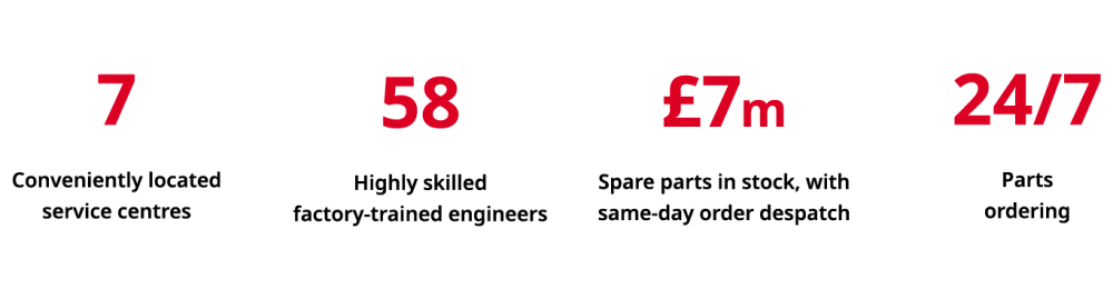 If the unexpected does happen, not only do you have access to 7 conveniently located service centres but also 58 highly skilled factory-trained engineers complete with mobile workshops. We understand the operational impact of having a vehicle in your fleet off-road, so with our service and maintenance packages you have complete peace of mind that any headaches will be quickly solved.