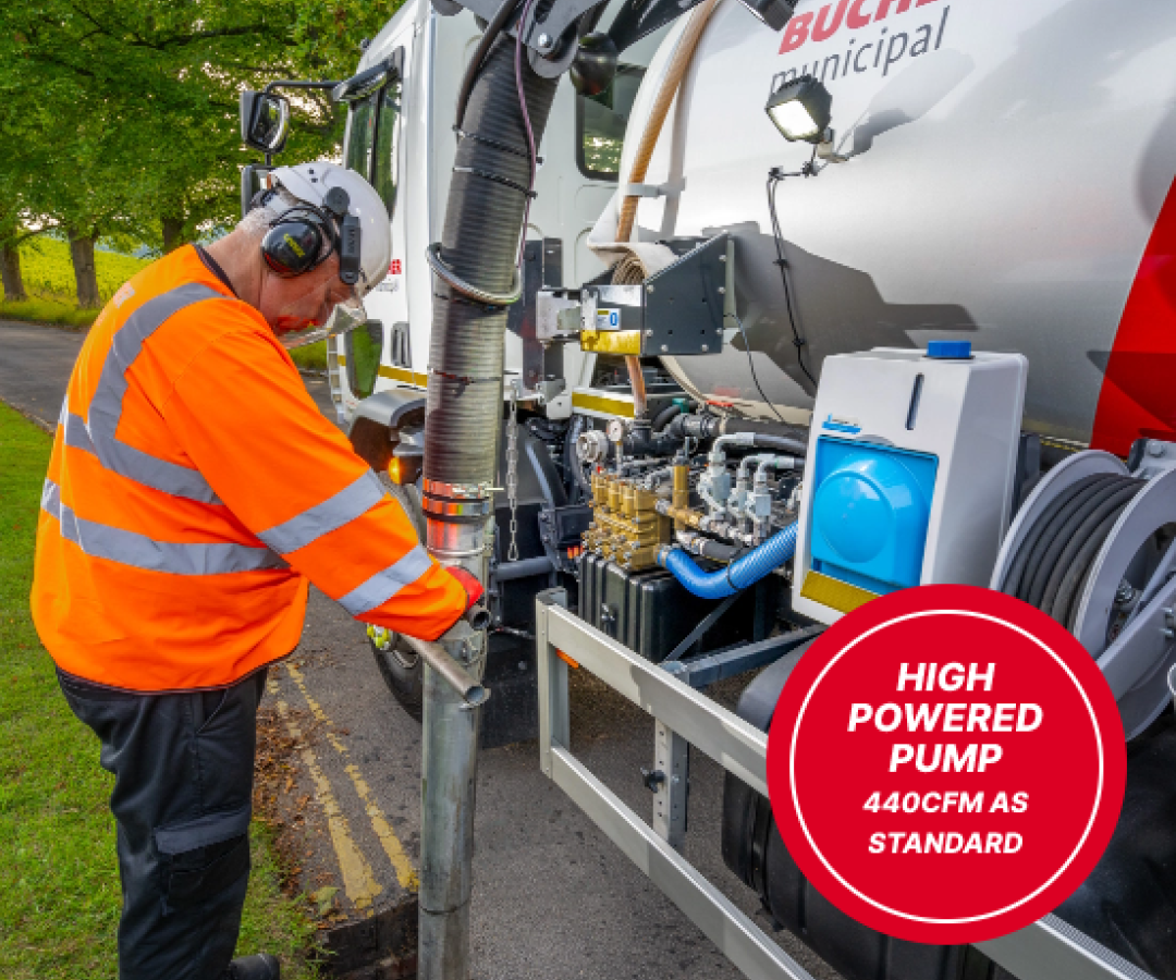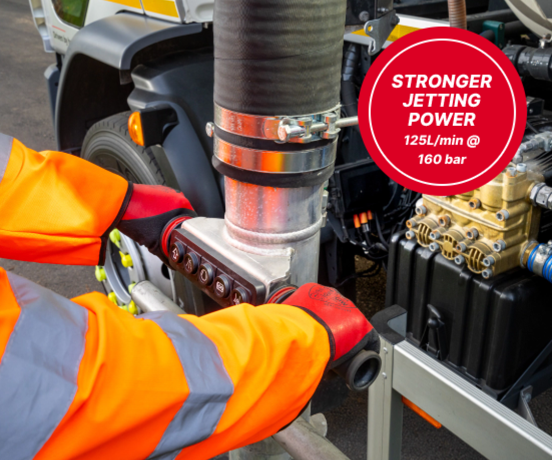 Equipped with a flexible 3-piece boom, a high-powered 440CFM pump (as standard), and a large 8m3, durable debris tank maintaining gullies is easy and efficient.