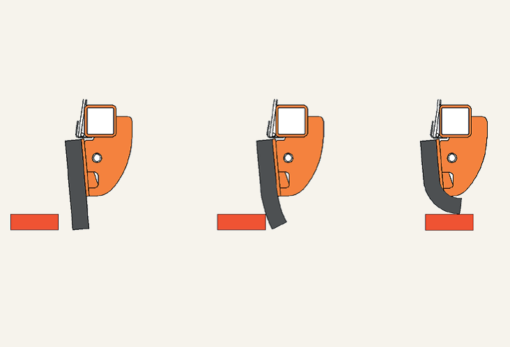 For steel scraping edges, each element is equipped with an independent spring-loaded shock absorber system.