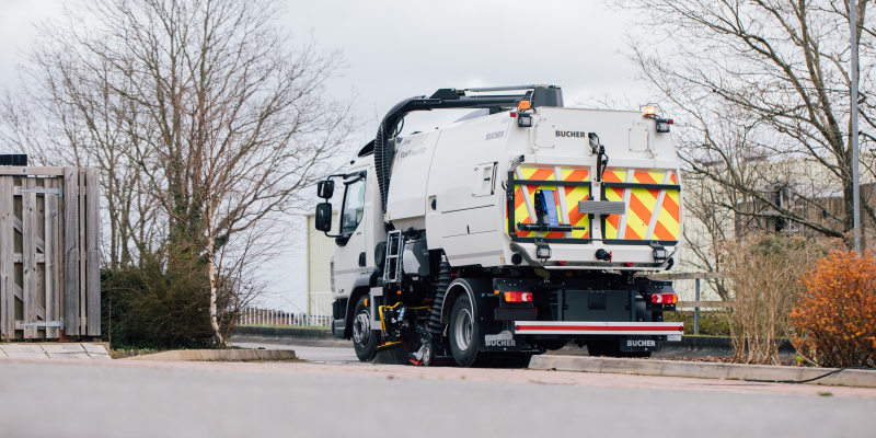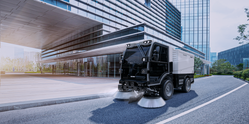 Offering a solution for zero-emissions sweeping with a 100% electric truck-mounted sweeper.