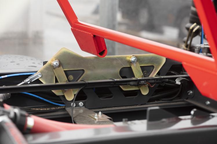 Additionally, the MaxPowa V65e is also fitted with waterproof IP67 automotive electrical connectors for enhanced reliability. Bucher MaxPowa V65e models have equipment storage lockers on both sides of the hopper for storage of hydrant or Wanderhose extension tubes.