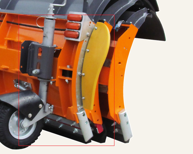 Suitable for clearing snow at high speed. It is made up of a fixed joint-free structure and one or two extending telescopic elements which, depending on the models, extend respectively one on the left and one on the right side, to vary the working width according to the different types of road surface. It allows you to work both in the closed and extended position and in all intermediate positions. Equipped with hydraulic lifting and lowering, right-left steering and mobile elements, it can be used for clearing snow from motorways and airports.