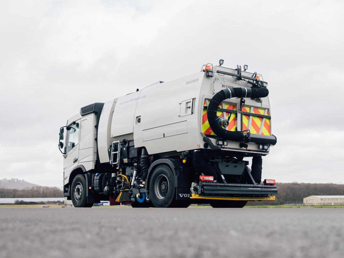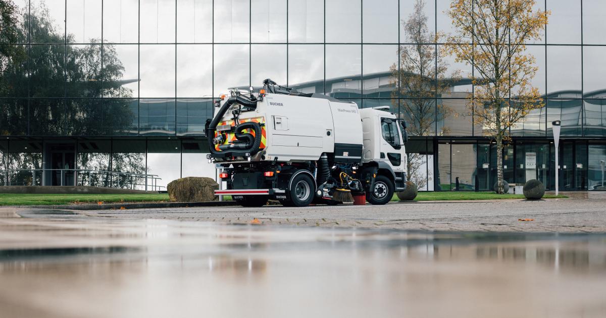 The MaxPowa V65e, 100% electric truck mounted sweeper offering a solution for zero emissions sweeping combined with longer on-station time, ease of use and low operational costs.