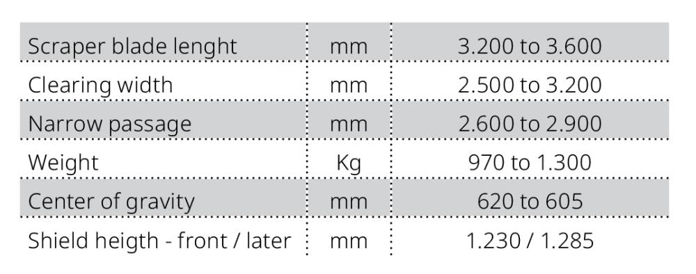 4 main body sizes and up to 12 width variants, 2 scraper blade configurations, 15 mounting systems, 2 driving systems are only a few of the possibilities to perfectly fit your vehicle maximizing reliability and efficiency.
