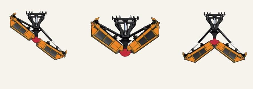 Wedge plough configuration: the high and open profile of the mouldboard ensure an excellent evacuation of snow from the outline and makes easy clearing of a very large amount of snow. It is also ideal to operate in narrow passages because of the extremely compact dimensions when Unix is V shaped.