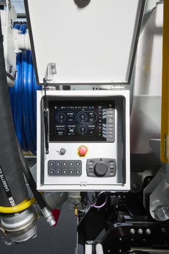 19m storage capacity for the 6” vacuum hose. Hydraulic rollers automatically feed the hose in and out, reducing manual handling. Ideal for deep pits and wells. High-speed debris transport with minimal blockages. Easy top-tank inspection.