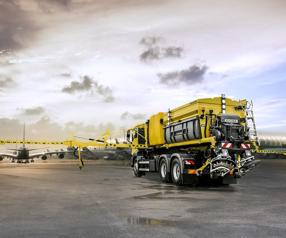 That de-icing agent is very expensive and needs to be approved by the authorities. Therefore, recycling of the de-icing agent is crucial both for environmental and performance reasons. Bucher Municipal offers vehicles that have the ability to collect the de-icing agent used, so that agent can be used once again.