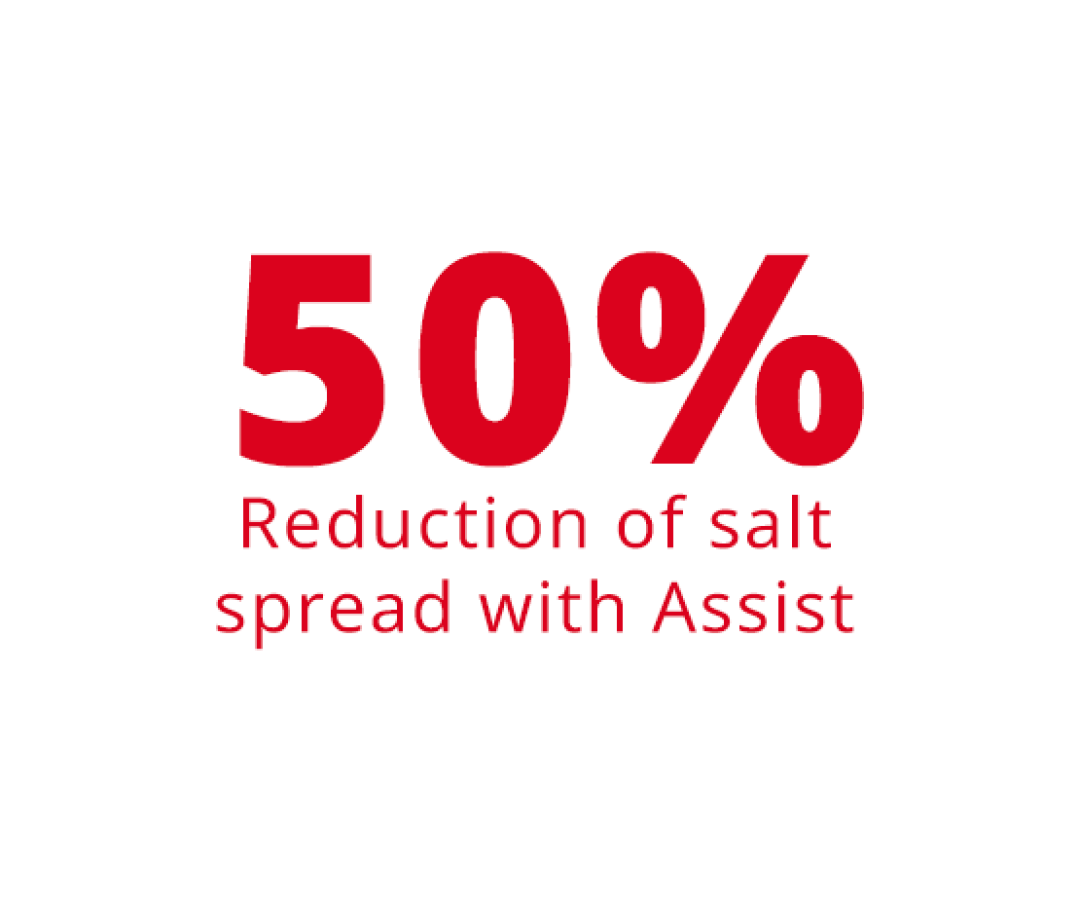 Assist's automations allow direct action on spreading parameters. The operators interviewed say they feel safer driving because they no longer have to worry about selecting the amount of salt spread and the asymmetry of the disc.