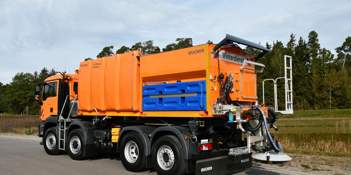 Bucher Icebear Ve, the first fully electrically driven professional salt spreader with auger extraction system
