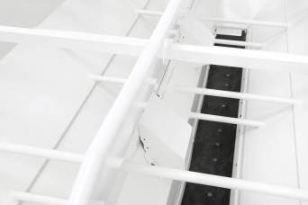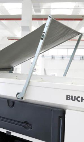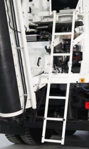 The rear folding ladder enables the user to check the top of the machine, or open the hopper roof. IT includes safety rails to enable you to operate safely on top of the ladder.