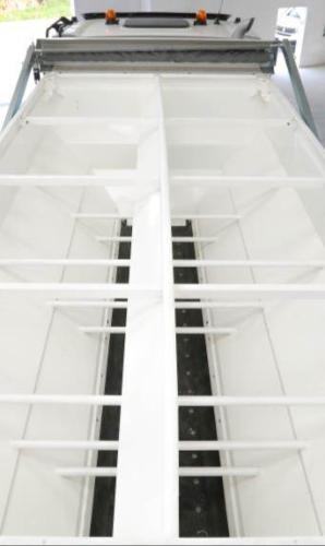 The hopper’s gate is operated automatically by a hydraulic cylinder, which closes at the bottom of the hopper to keep the humidity out of the hopper. It also features a cement level sensor with an warning on the control panel.