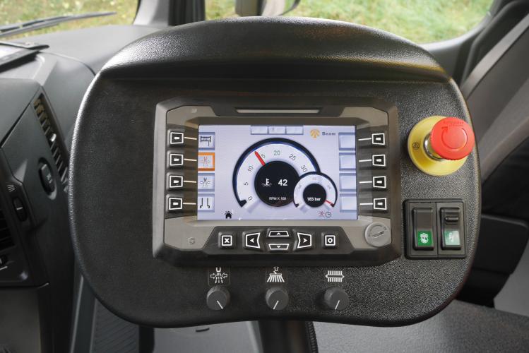A CAN bus control panel for control and monitoring of sweeping operation is mounted in the cab with ergonomic and easy to read functions for the reading of information including engine temperature and operating hours.