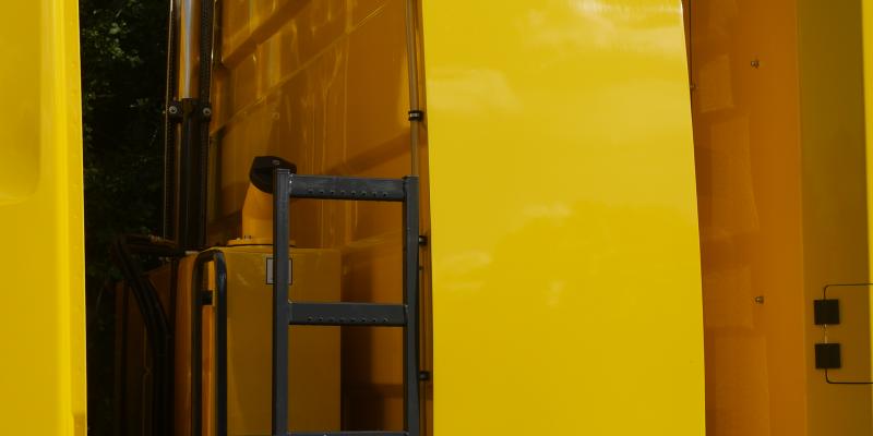 Featuring a large 9.5m³ capacity hopper. The hopper features a special air-guide system separating dirt from air. The dirt settles on the hopper bottom, whereas the clean air in the upper hopper part is sucked by th suction-fan.