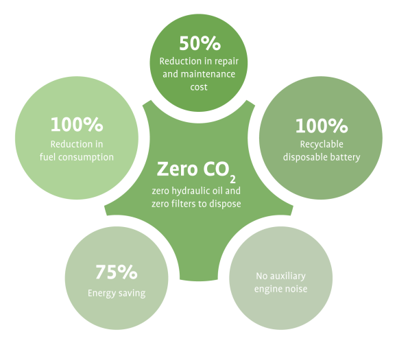 Latest technology maintenance-free lithium battery, allowing partial and fast charging cycle without damages and designed for up to 9000 working hours.