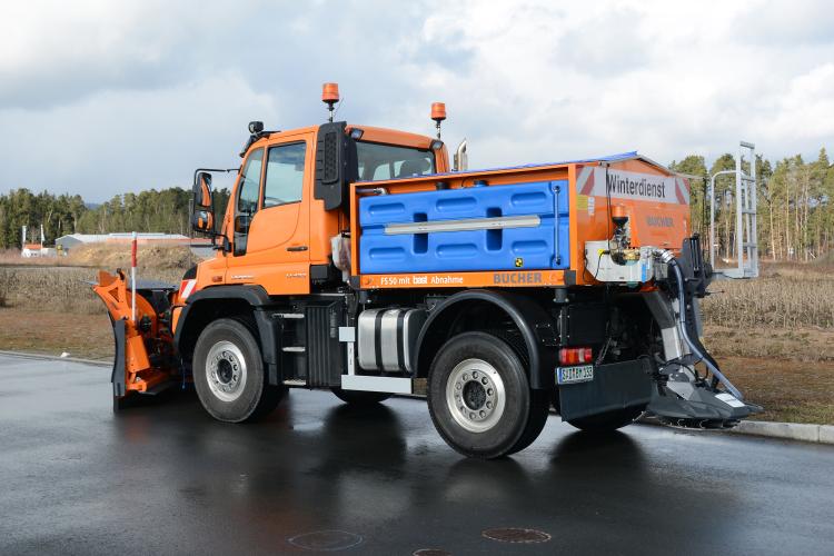 The gritting machines of the Yeti Omega range are ideal for the new FS 50 pre-wetted salt technology and have an innovative container design and are available with a large number of container sizes. This makes them ideal for mounting on a wide variety of municipal carrier vehicles such as Unimog and trucks.