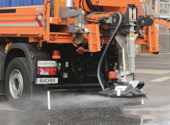 If a spreader unit with FS 30 pre-wetted salt spreading is equipped with the additional ECO FS 100 / 8 m option, the operational capabilities are extended from the normal FS 30 spreader to a pure brine spray with a spray width of 8 metres. In addition, with the ECO FS 100 / 12 m option the customer obtains the facility using the BrineStar® to spread pure brine across a spray width up to 12 metres. Therefore when the customer orders the ECO FS 100 pre-wetted salt technology he obtains an attractively-priced combination spreader unit with very high flexibility in daily winter service operation.