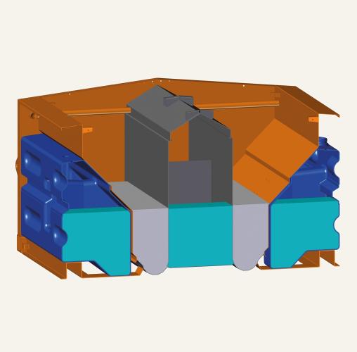 For the ECO FS 50 technology, the proportions of dry salt und brine are each 50%. So that the necessary additional brine supply can be carried on the truck, one or more additional tanks are fitted to the front of the spreader unit. Spreader units with the twin auger system have additionally the capability to accept an ECO additional tank made of stainless steel and mounted longitudinally. The loading of dry material into the hopper is not affected by this solution, since the hopper length remains unchanged.