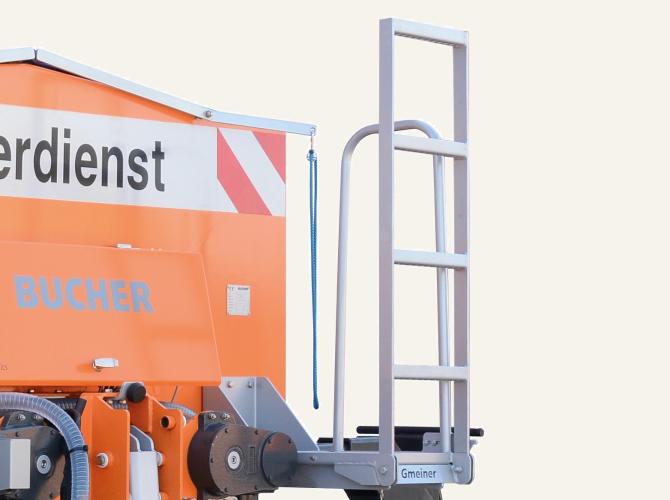 The gritting machine has a special paintwork and the spreader disc, feet sockets and all fasteners are made from stainless steel. Thespreader is also available as a full stainless steel version (optional).