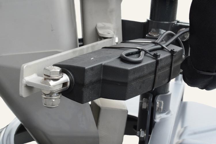 The spread control is mounted on the disc protection. Contactless, infrared technology is used to monitor spreading. The housing is 100% waterproof to IP 67 protection rating.