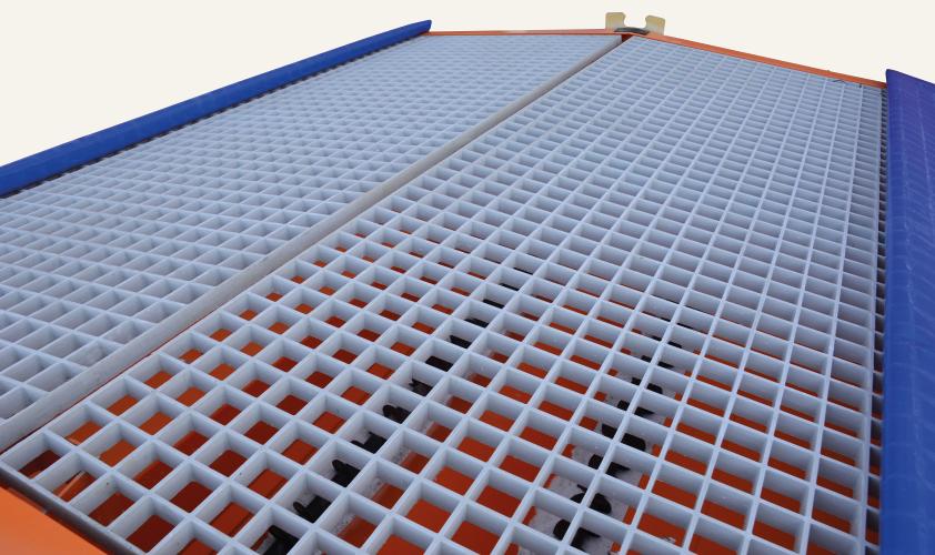 The equipment safety cover is mounted in the hopper and has a light construction made of highly resistant GFK material.