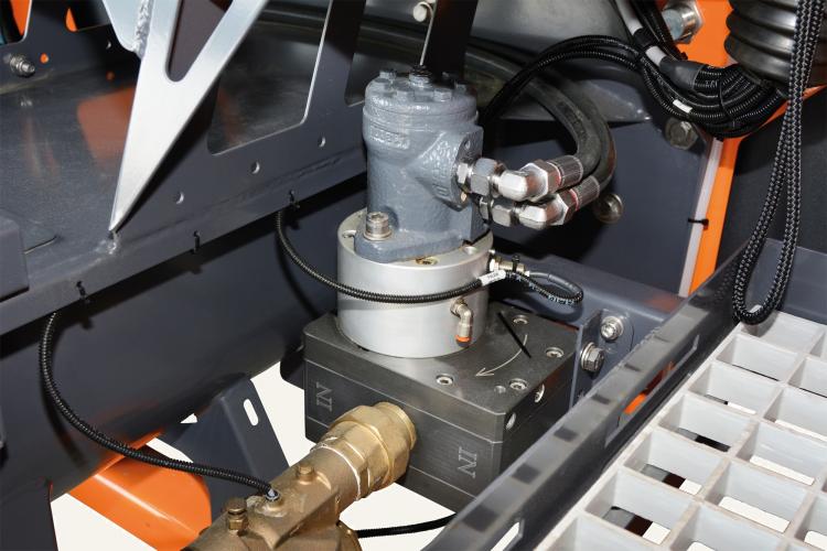 The LED work light is mounted by the spreading group and provides very bright white lighting in the work area. The housing is dust- and damp-proof.