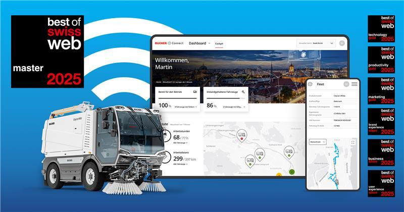 We are pleased to announce that Bucher Municipal has been awarded the prestigious title of Master of Swiss Web at the 25th anniversary edition of the Best of Swiss Web 2025 Awards for our innovative digital platform, Bucher Connect.