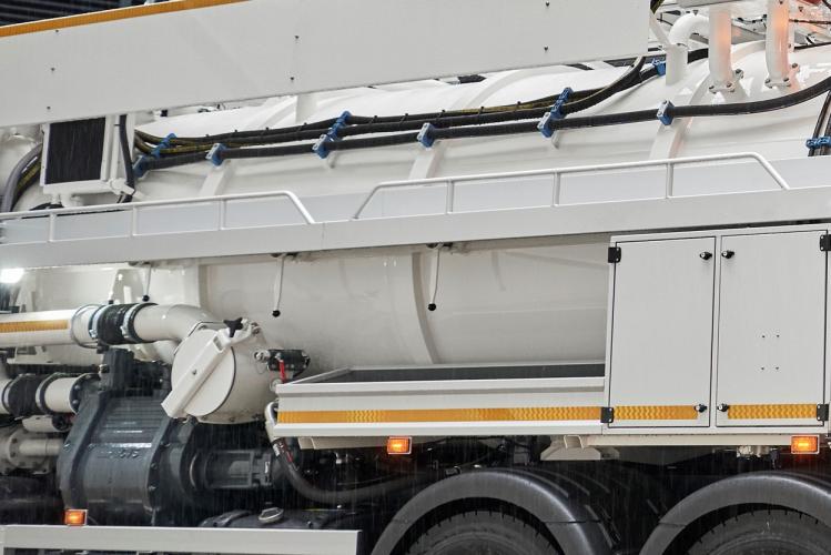 A belt-driven jetting pump, vane pump for vacuum, and variable speed PTO ensure that the vacuum and water pump as well as the engine run at optimal revolutions, which can help reduce fuel consumption by up to 20%.