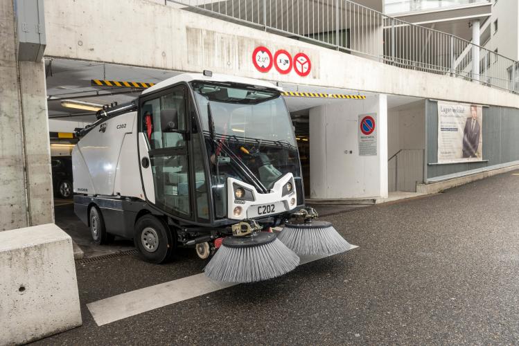 The Bucher C202 is under 2m including optional wander hose allowing access to car parks and under bus shelters where other sweepers are unable to sweep.