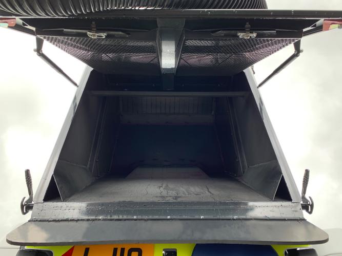 The Bucher C202 is easy to empty and clean. The hopper is lifted by two powerful hydraulic rams allowing the load to be tipped into bins and skips up to a 1525 mm tipping height.