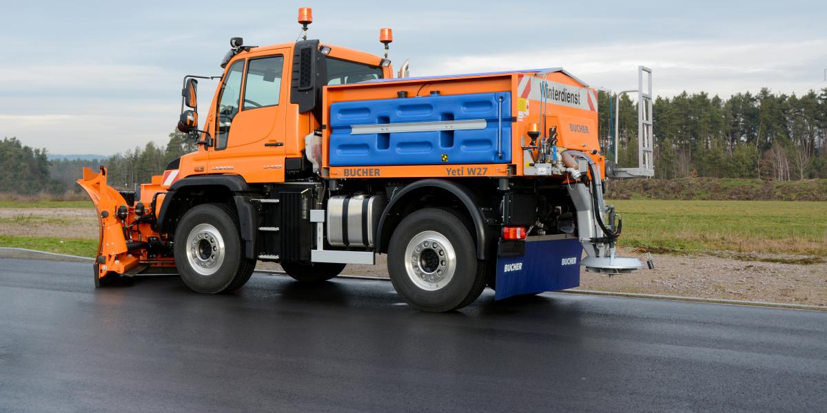 The Yeti spreaders with double auger system for Unimog and medium trucks.